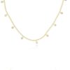Este collar estilo punto de luz múltiple, con delicadas gotas de resplandor, es una pieza exquisita que aporta un toque de sofisticación y glamour a cualquier look. Las pequeñas gotas, dispuestas con precisión, reflejan la luz de manera elegante, creando un efecto brillante y lleno de vida. Su diseño moderno y refinado está acompañado por una cadena elegante que realza aún más la delicadeza de las gotas, ofreciendo un conjunto armonioso y lleno de estilo.